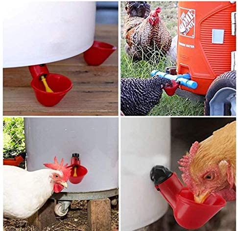 DIY Chicken Water Bowls – We bought these water cups when we were setting up some chicken tractors and we wanted a waterer we could hang that wouldn't spill. These ended up being just what we were looking for! The chickens learned out to use them quickly and since the bowls fill up, the chickens could get a nice full drink of water. We ended up putting 8 on a hanging five gallon bucket. We left the lid off so we could easily refill it while still hanging in the chicken tractor but if you were using it in a normal coop, I would want a lid to keep the dust out. Since the cups stick out, it's not easy to carry a full five gallon bucket without bumping off some of the red cups since you have to hold the bucket away from you to avoid that.