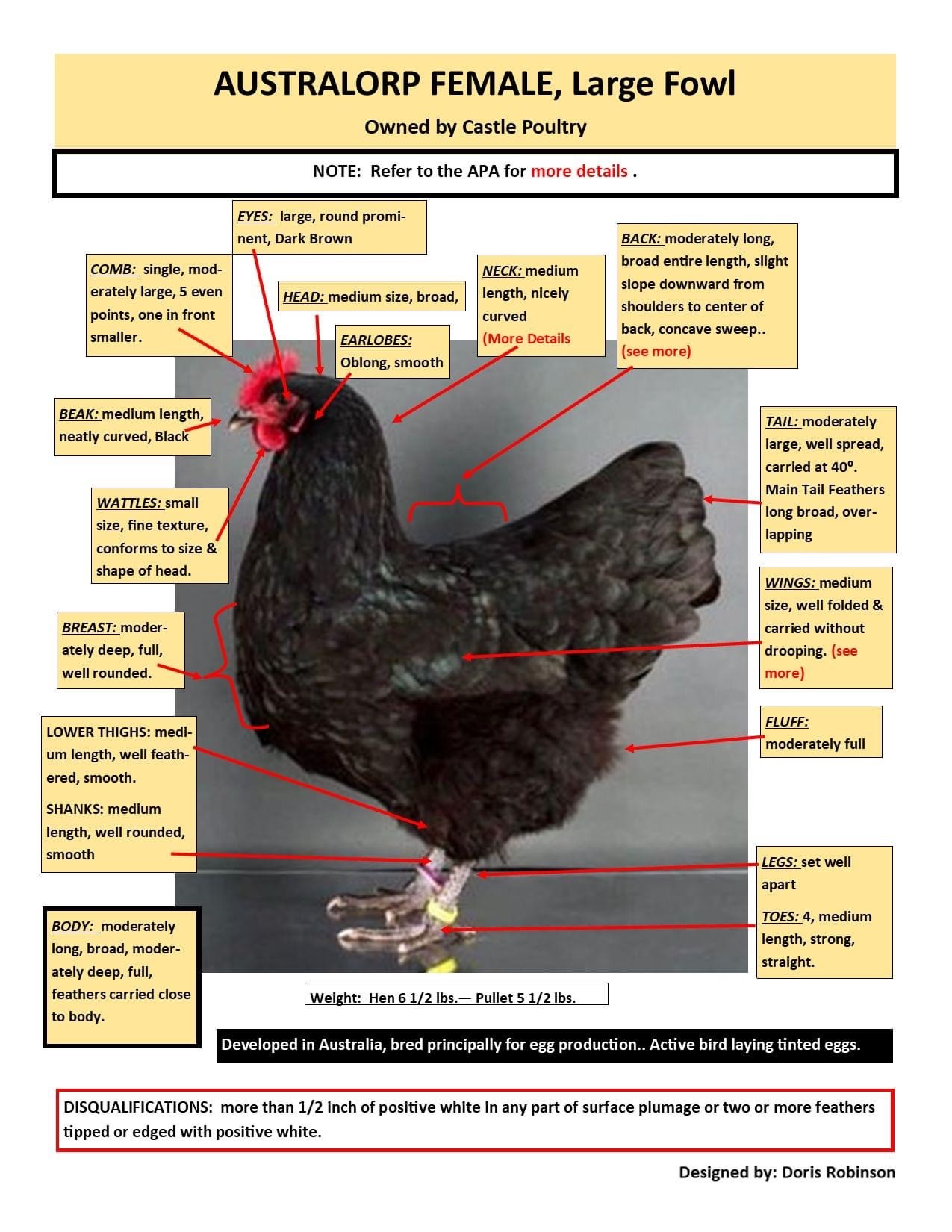Check out the helpful graphics below for more detail on what to look for in the Standard-bred Australorp: