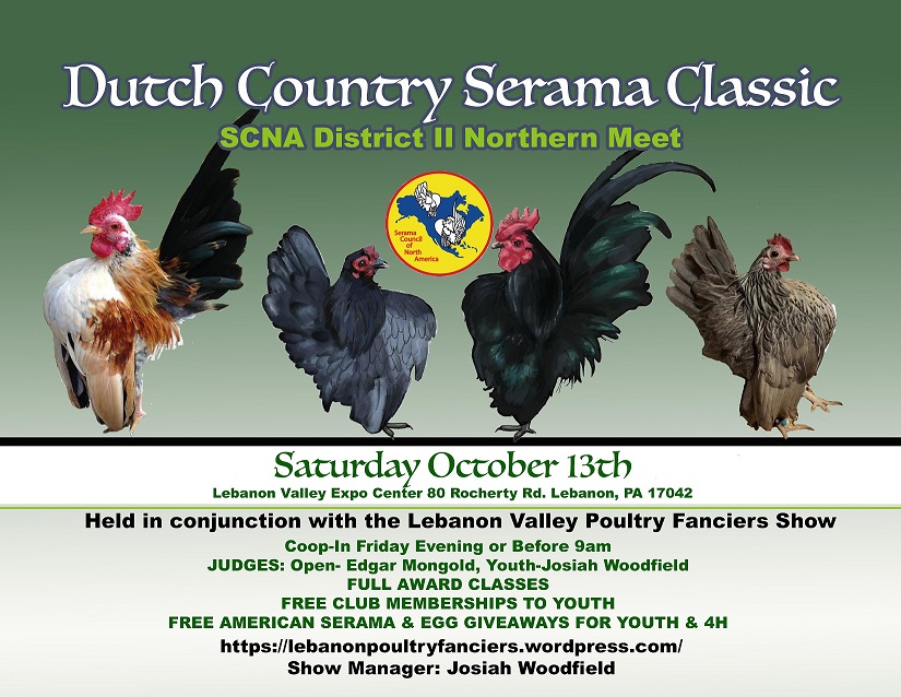 Includes a Pigeon Show & the SCNA Keystone Classic Tabletop Show