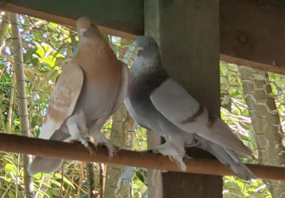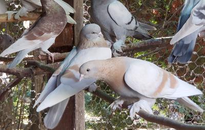 All my Syrian Coop Tumblers will carry at least one gene for: dilute, reduced, faded, indigo, and rarely a few with grizzle. They are very calm birds and tame up quickly when handled. They have very soft and dense body feathering and do well in heat and cold outdoors, are great mothers for short beaked birds, are active and healthy and long lived. {I have several that are in the 12-15 yr old range} They do clap their wings and tumble off and on, mostly outside and to and from a perch or nest box. Inquiries welcome, tell me what you are looking for in a bird, color, show quality, etc. ask for more photos, I am a NPA member, and stand by my birds❣️