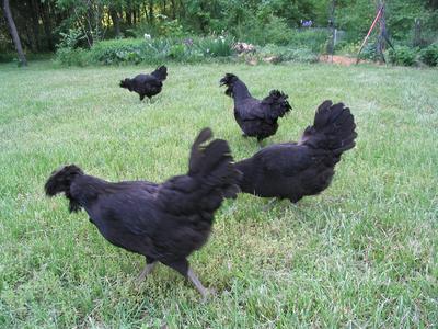Hatching eggs are $30/dozen. You are welcome to specify all black Crevecoeur hatching eggs, which will be out of our show-quality stock. We will include hatching eggs from our blue Crevecoeurs on your request. We have not yet showed birds from our blue Crevecoeurs, but they look very promising to us, and we will be showing them later this year. Eggs from our blue Crevecoeurs will hatch as blue, black, or black chicks.