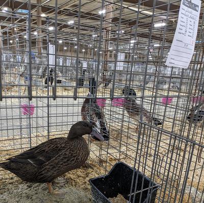 We showed our Dutch Hookbill ducks at the November 2023 Ohio National Poultry Show in Columbus, Ohio. Our Hookbills won best of variety for Mallard, Bibbed Mallard, Dusky, and Bibbed Dusky. Our Bibbed Dusky drake and hen won Best of Breed and Reserve Breed, respectively. Dutch Hookbill ducks are not recognized yet by the American Poultry Association, so they show under All Other Ducks.