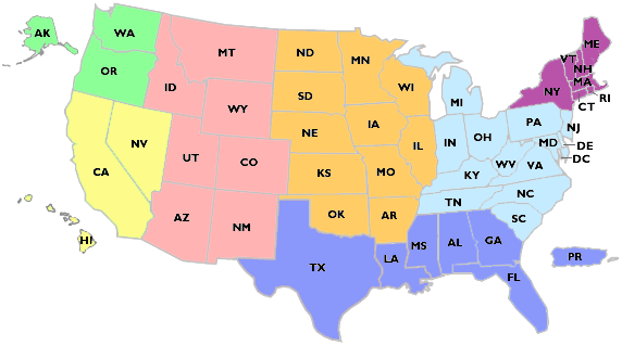 Central-(ND, SD, NE, KS, OK, AR, MO, IA, IL, WI, MN) | Southern-(TX, LA, MS, AL, GA, FL)