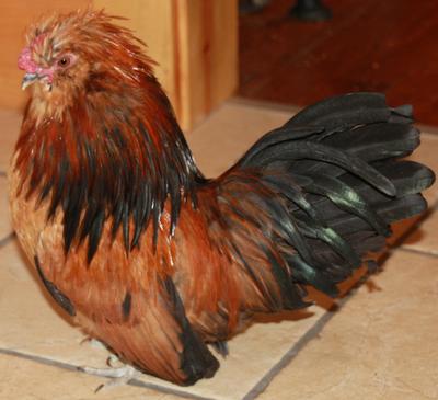 Watermaal are similar to the Belgian d’Anvers I also breed and raise but there are a few important distinctions: Watermaal females are supposed to have a nearly closed tail carried at approximately 50-degrees above the horizon, males have a lower tail carriage than d’Anvers, both sexes have small tassels on their heads that should not obstruct vision, triple spiked rose combs, smaller body size and a slightly slimmer and trimmer body profile than the d’Anvers.